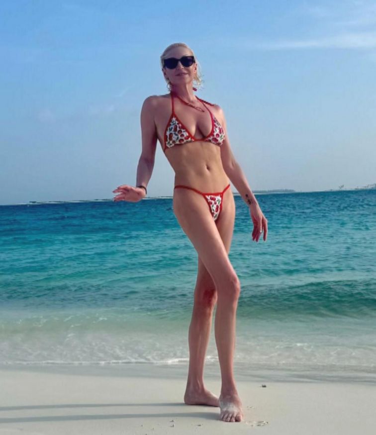 Волочкова кокетливо прокомментировала снимок. «Пляжный экзерсис на Мальдивском острове», — написала она.