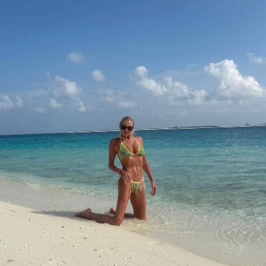 Анастасия вместе с партнером приехала на побережье 4 января. В первый же день на Мальдивах она появилась на пляже, где показала физическую форму, исполнив свой знаменитый трюк.