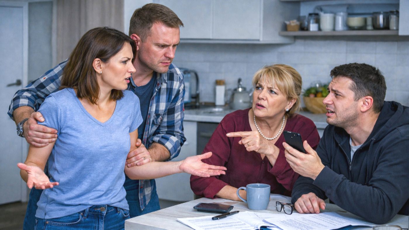 Оксана прошла в прихожую, глянула в глазок. На площадке стояла Людмила Петровна — свекровь, в бежевом пальто, с напряжённым лицом. Рядом маячила фигура брата мужа, Бориса. Тридцать пять лет, лысеющий, с вечно встревоженным выражением.