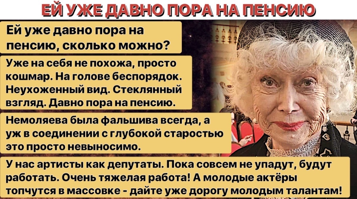 Тем не менее дискуссия о «дороге молодым» продолжает набирать обороты в онлайн‑пространстве. Несмотря на очевидную ценность профессионального наследия и вклад заслуженных артистов в культуру, находятся те, кто считает уместным отпускать язвительные замечания в адрес ветеранов сцены.