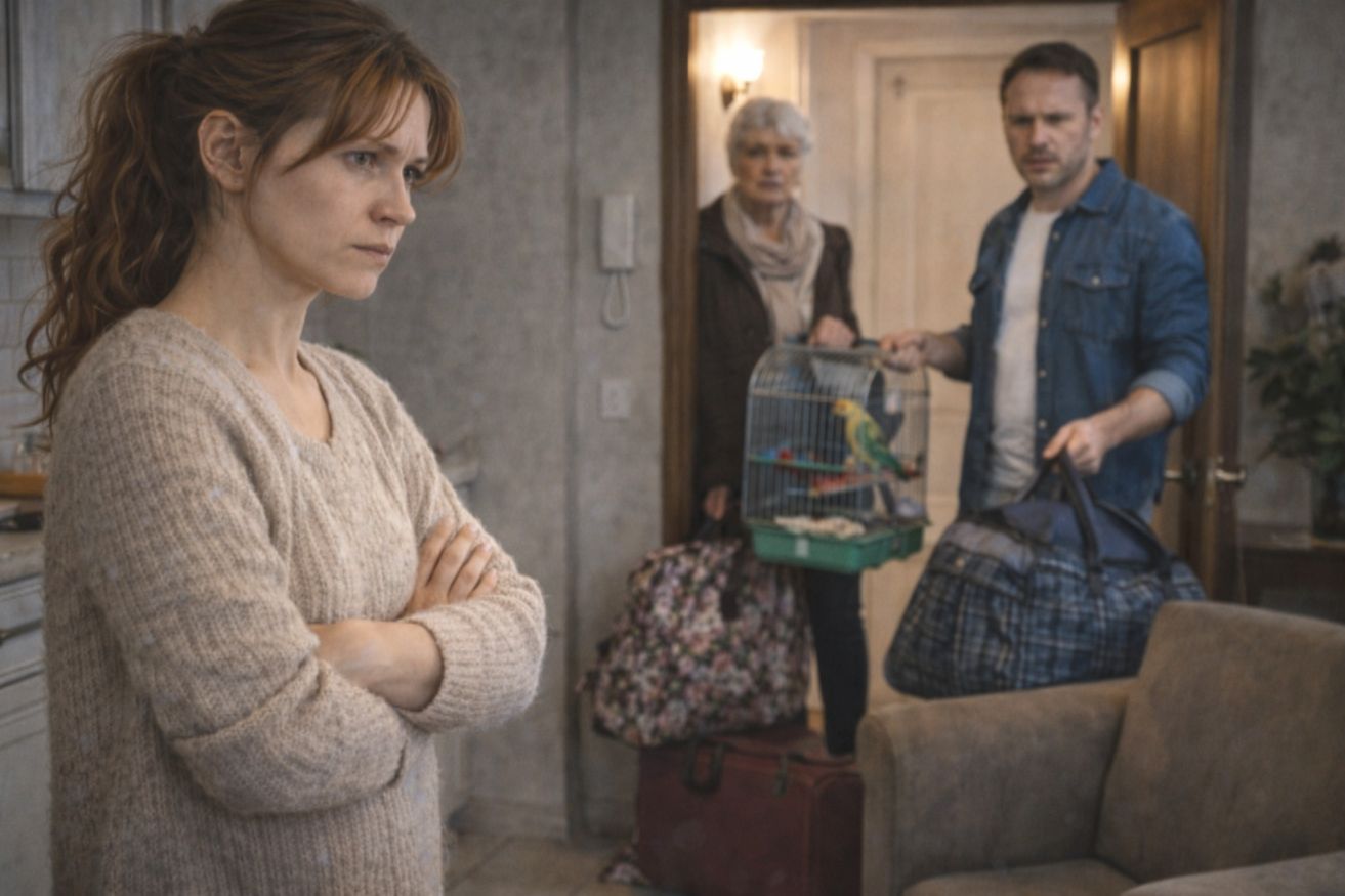 Алина, только что вернувшаяся с тяжелой смены, замерла в коридоре. Мимо неё, обдав запахом нафталина и дешевых сигарет, проплыла свекровь, таща за собой два набитых баула и клетку с вечно недовольным попугаем.