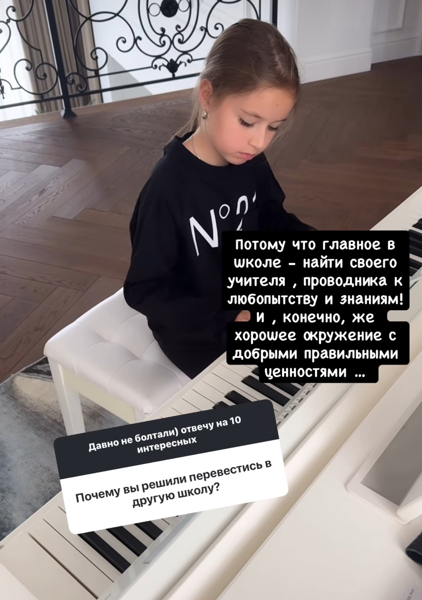 Полина также объяснила, зачем перевела дочь в другую школу. «Потому что главное в школе — найти своего учителя, проводника к любопытству и знаниям! И, конечно же, хорошее окружение с добрыми правильными ценностями», — заверила певица.
