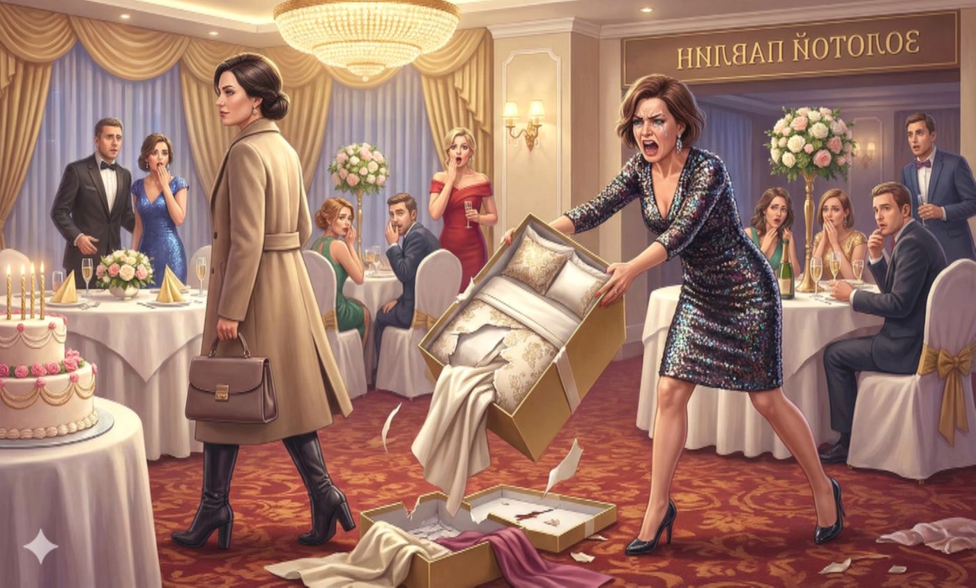 — Постельное белье? — её голос взвизгнул, ударив по ушам. — Ты подарила мне простыни?!