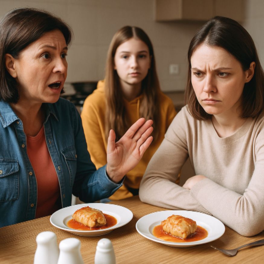 Через пять минут они уже сидели на кухне, будто всегда там жили. Лера жадно уплетала голубцы, не стесняясь. Валерия — тем более.