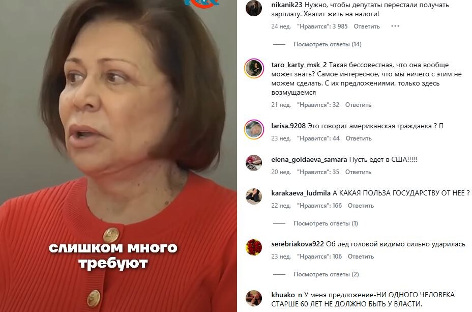 Существует старое мнение: может ли плохой человек быть хорошим профессионалом? Роднина как политик явно заигралась в «элиту». Нельзя годами кормиться из бюджета, получать зарплату из налогов тех самых людей, которых ты теперь попрекаешь отсутствием накоплений, и при этом смотреть на них свысока. Это чванство в чистом виде.