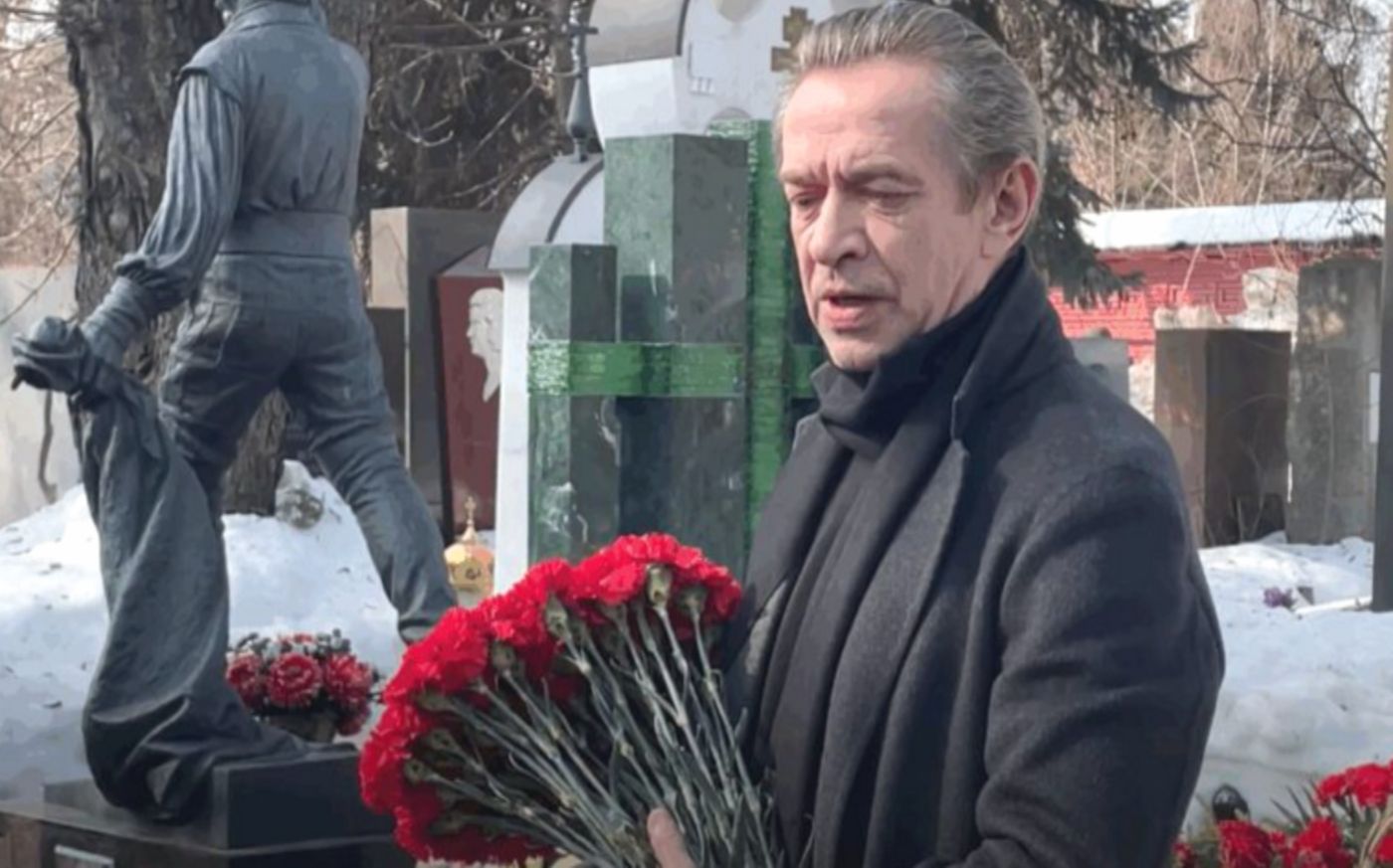 Но главный акт этого скандального спектакля разыгрался чуть позже. Марина Зудина находилась у могилы недолго. В какой-то момент она начала суетиться, быстро собрала детей и буквально сбежала с кладбища. Эта спешка выглядела очень странно, пока к месту поминовения не подошел Владимир Машков — знаменитый актер и нынешний руководитель театра, который создал Табаков.
