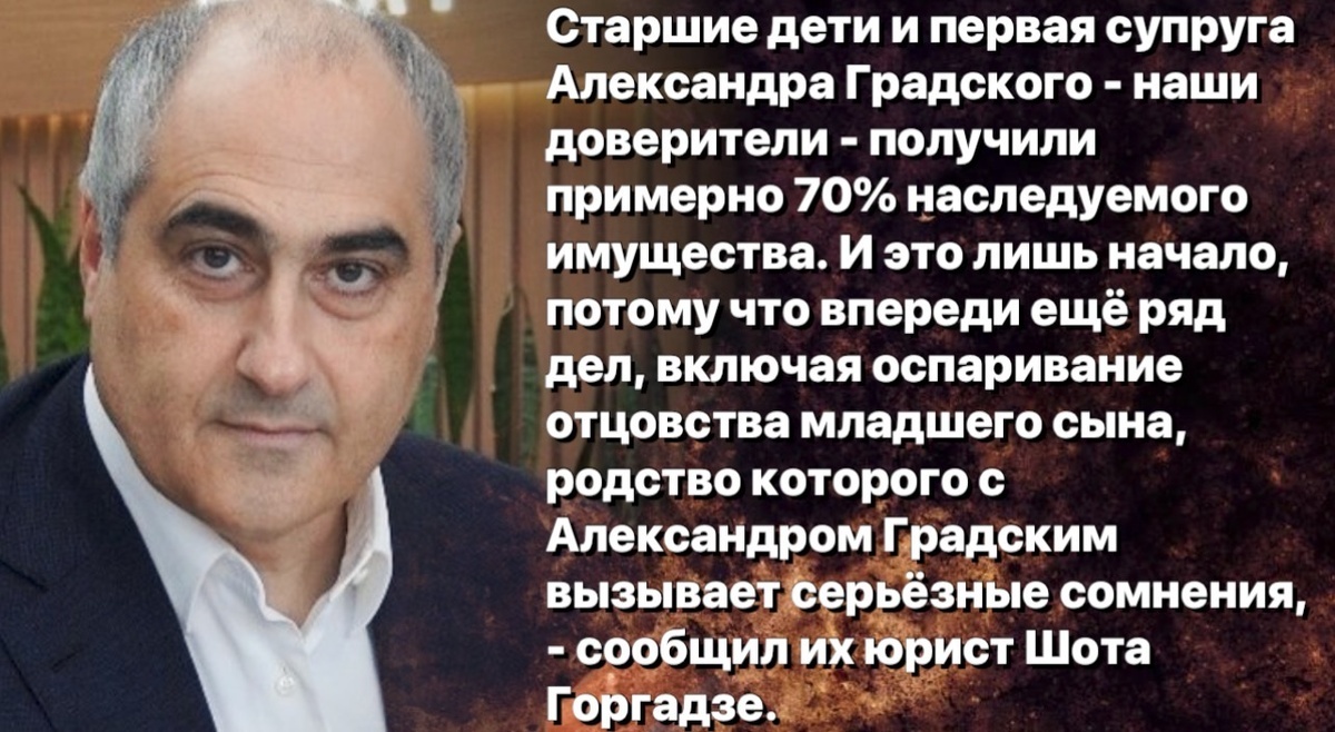 Тем не менее юридическая сторона конфликта продолжает развиваться. Горгадзе заявил о намерении своих клиентов добиваться признания Марины Коташенко недостойной наследницей. Адвокат не исключил и возможности возбуждения уголовного дела — по версии защиты, вдова могла присвоить часть имущества из наследственной массы.