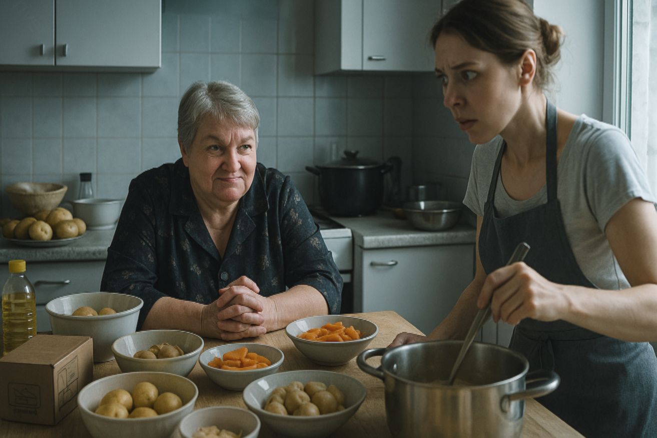 На кухне Инна включила свет и оглядела пространство. Вчера вечером свекровь привезла продукты — огромные пакеты с мясом, овощами, зеленью, специями. Всё это теперь занимало половину столешницы и весь холодильник. Инна вздохнула и принялась доставать ингредиенты.